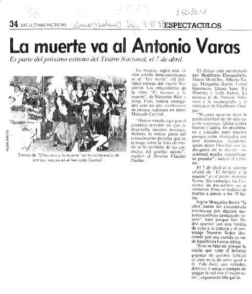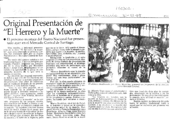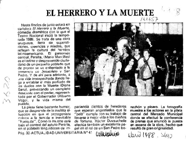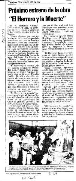 Próximo estreno de la obra "El herrero y la muerte" [artículo].