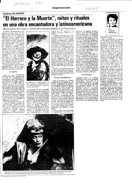 "El herrero y la muerte", mitos y rituales en una obra encantadora y latinoamericana [artículo] Yolanda Montecinos.