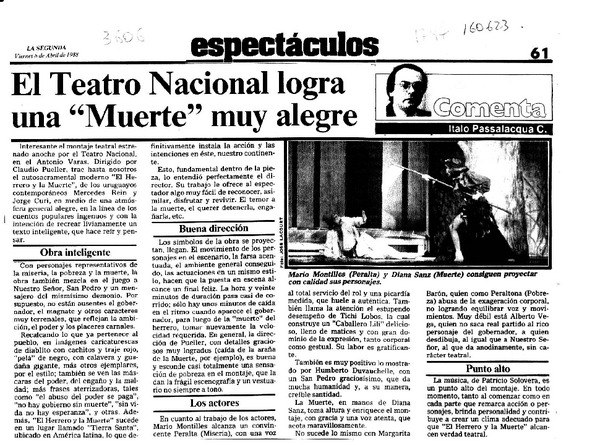El Teatro Nacional logra una "muerte" muy alegre [artículo] Italo Passalacqua C.