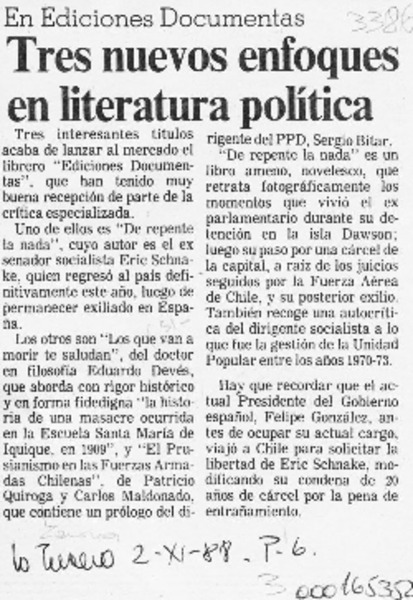 Cuadra, Fernando - Autores peruanos - La estructura dramático-teatral - BRYCE ECHENIQUE, ALFREDO - Autores españoles - Autores chilenos - VAZQUEZ MONTALBAN, MANUEL - UMBRAL, FRANCISCO - SCHNAKE, ERICH - CRONICAS PERSONALES - NADA EN EL DOMINGO - HISTORIAS DE POLITICA FICCION - DE IMPROVISO LA NADA