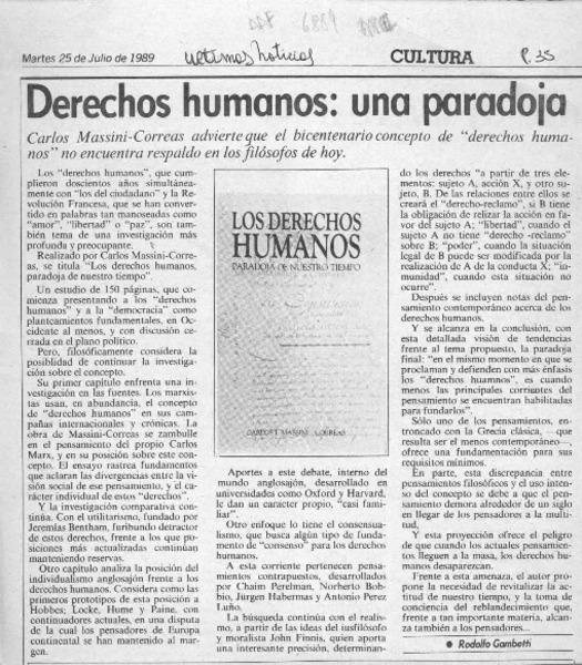 Derechos humanos, una paradoja [artículo] Rodolfo Gambetti.
