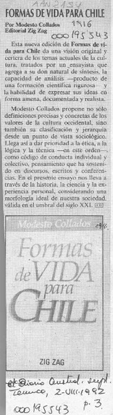 COLLADOS, MODESTO - FORMAS DE VIDA PARA CHILE