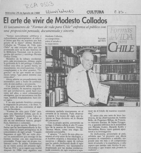 Modesto Collados, "Mi último libro es de ciencia política pero no es propaganda para el plebiscito" [artículo].