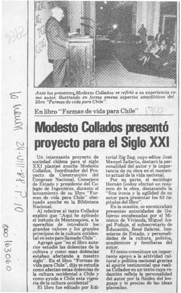 Modesto Collados presentó proyecto para el siglo XXI [artículo].