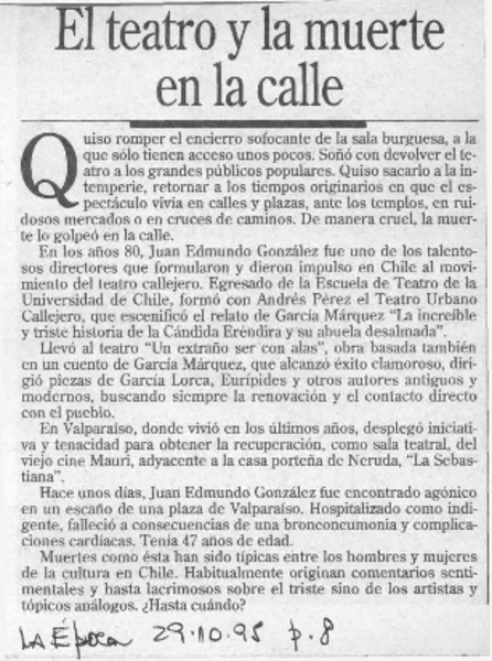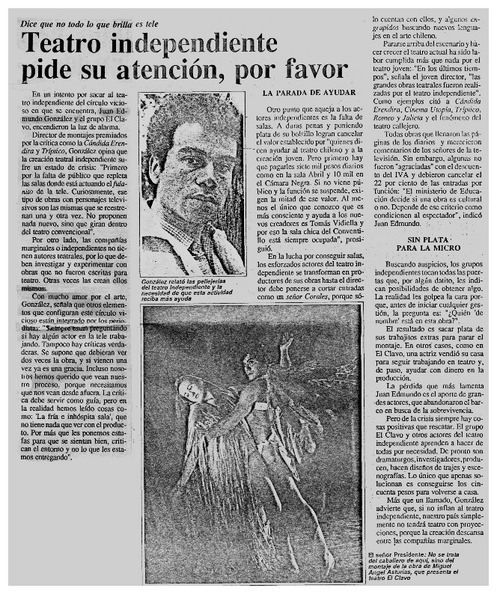 En la calle estrenan obra sobre vida y música de Violeta Parra. [artículo]