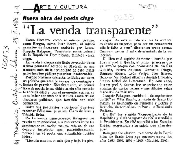 Joaquín Balaguer, el iluminado [artículo] Enrique Lafourcade.