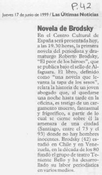 Autores chilenos - BRODSKY, ROBERTO - PEOR DE LOS HEROES