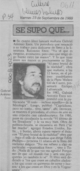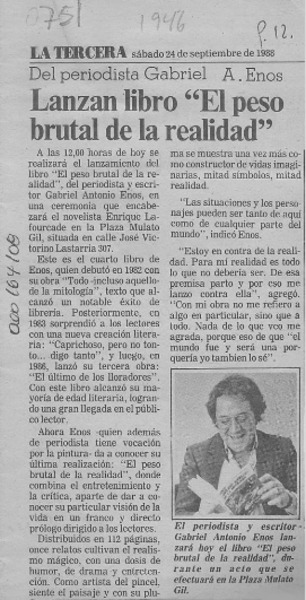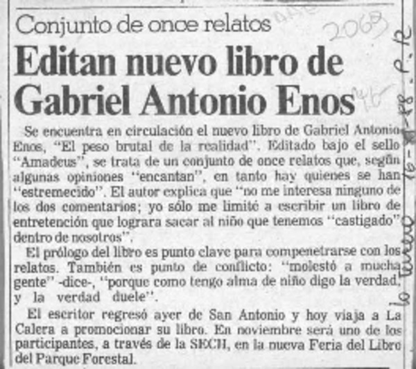 Editan nuevo libro de Gabriel Antonio Enos [artículo].