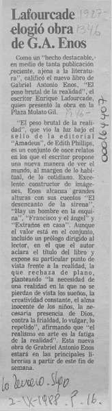 Lafourcade elogió obra de G. A. Enos [artículo].