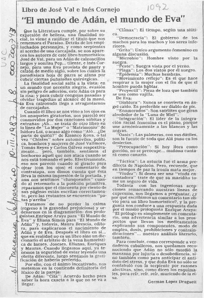 "El mundo de Adán, el mundo de Eva" [artículo] Germán López Droguett.