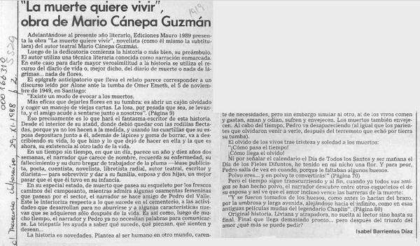"La muerte quiere vivir", obra de Mario Cánepa Guzmán [artículo] Isabel Barrientos Díaz.