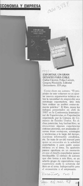 CACERES, CARLOS F. - EXPORTAR, UN GRAN DESAFIO PARA CHILE - LARRAIN, FELIPE