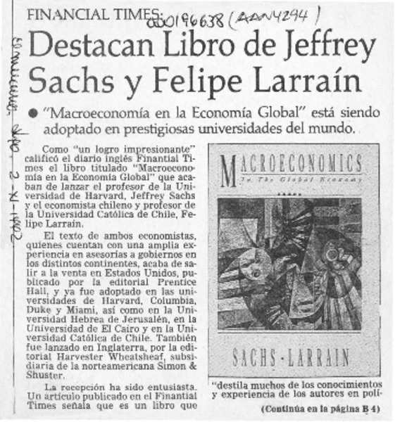 Destacan libro de Jeffrey Sachs y Felipe Larraín [artículo].