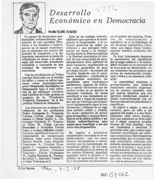 Desarrollo económico en democracia [artículo] Neville Blanc Renard.