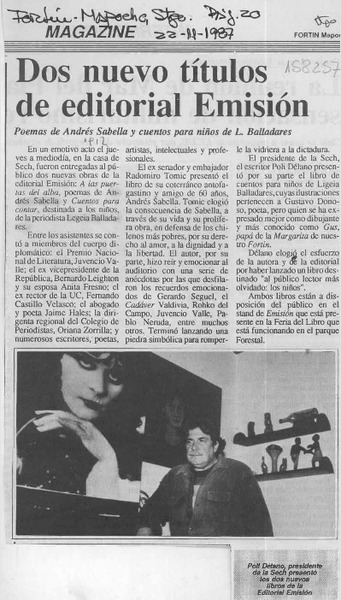 ![Dos nuevos títulos de editorial Emisión [artículo]. Dos nuevos títulos de editorial Emisión [artículo].](channels-528_mime_jpg.gif)
