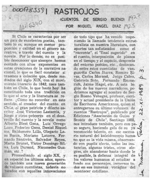 Cuentos de Sergio Bueno [artículo] Miguel Angel Díaz A.