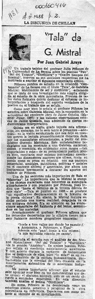 "Tala" de Gabriela Mistral [artículo] Juan Gabriel Araya.