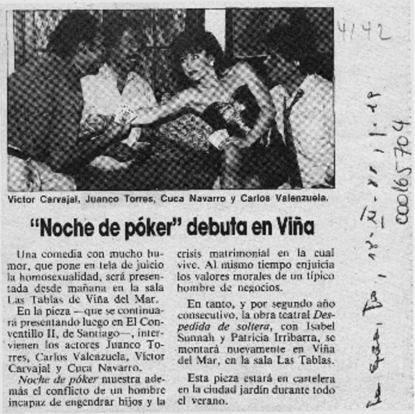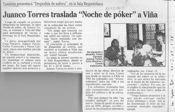 Juanco Torres traslada "Noche de póker" a Viña [artículo].