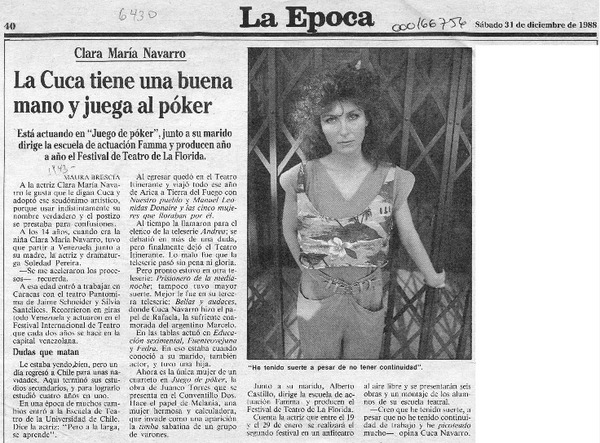 La Cuca tiene una buena mano y juega al póker [artículo] Maura Brescia.