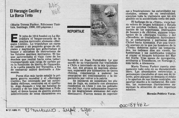 El "Herzogin Cecilie" y la barca Tinto [artículo] Hernán Poblete Varas.