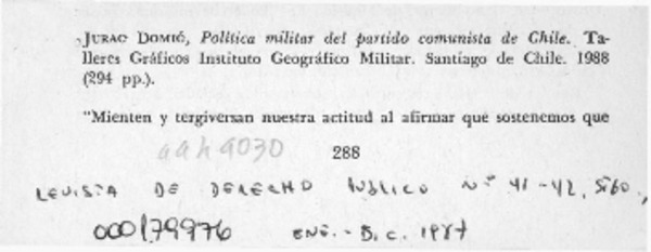 DOMIC KUSCENIC, JURAJ - POLITICA MILITAR DEL PARTIDO COMUNISTA DE CHILE