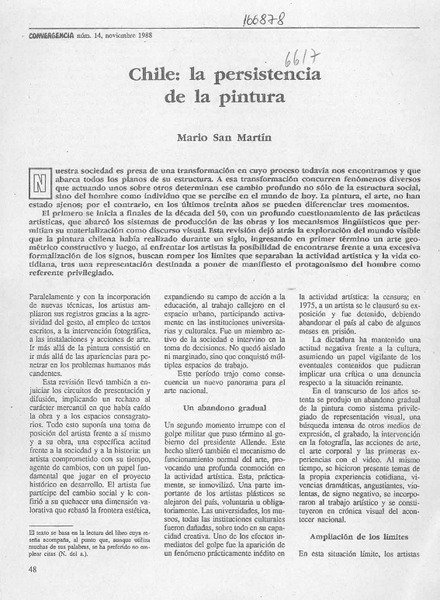 Chile, la persistencia de la pintura [artículo] Mario San Martín.