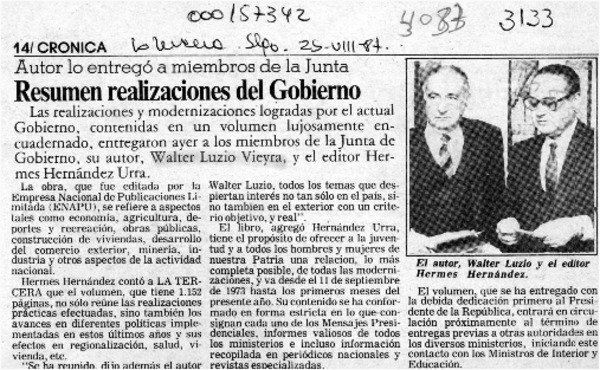 Editan libro con logros del gobierno 1973-1986 [artículo].
