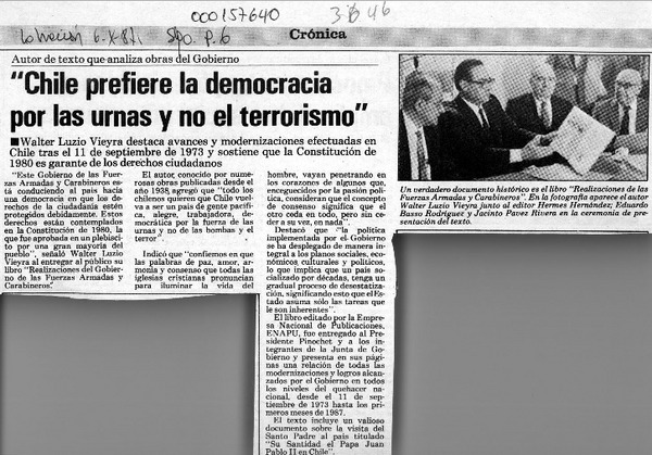 LUZIO VIEYRA, WALTER - REALIZACIONES DEL GOBIERNO DE LAS FUERZAS ARMADAS Y CARABINEROS