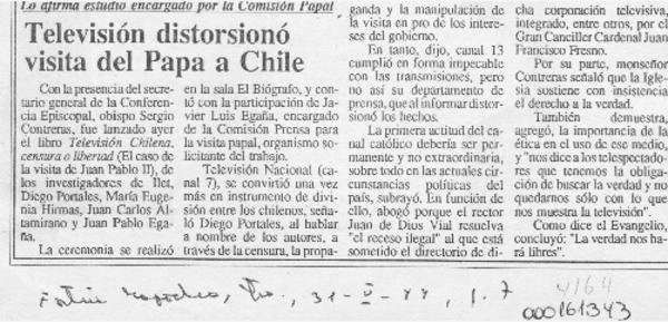 Presentación de libro sobre la TV y la visita papal [artículo].
