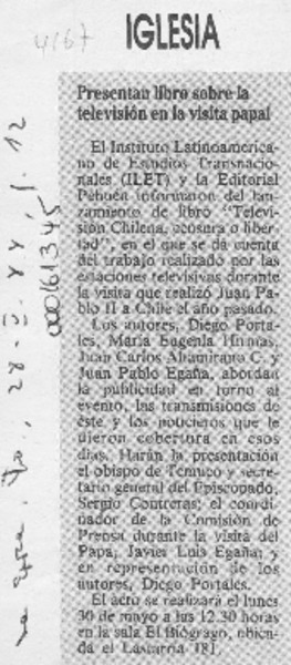 Presentan libro sobre la televisión en la visita papal [artículo].