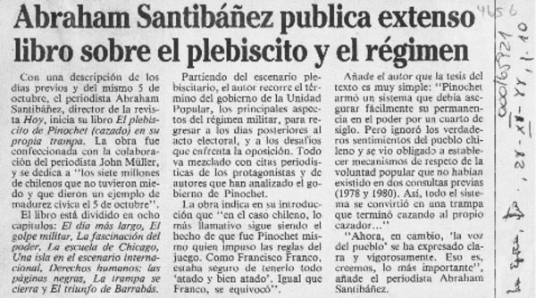 SANTIBAÑEZ, ABRAHAM - PLEBISCITO DE PINOCHET; CAZADO EN SU PROPIA TRAMPA, EL
