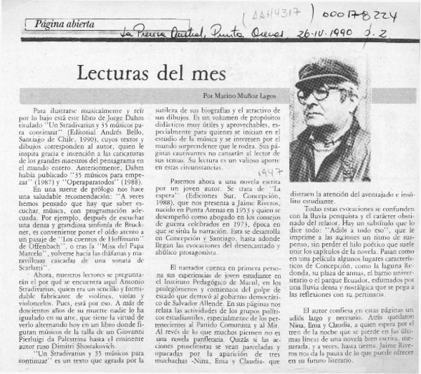 Lecturas del mes [artículo] Marino Muñoz Lagos.