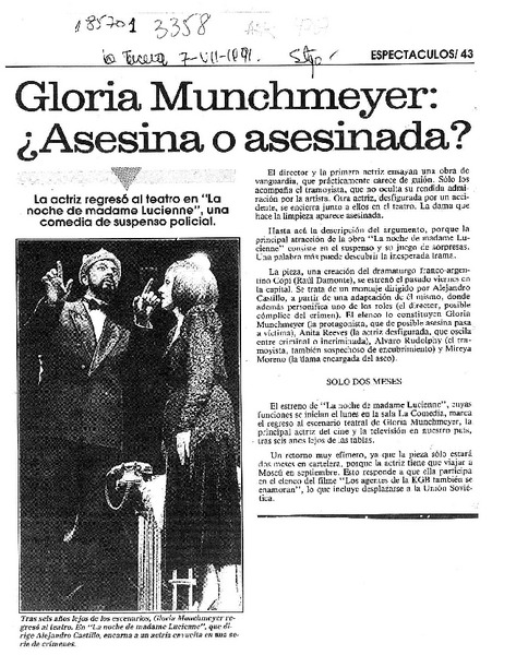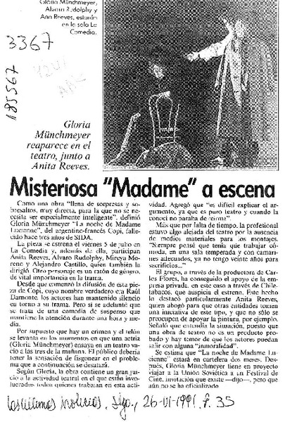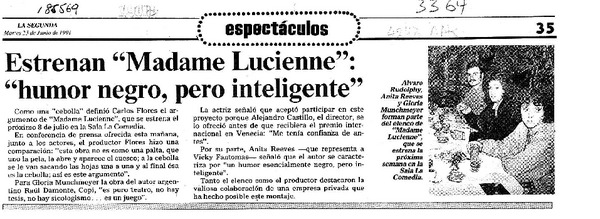Estrenan "madame Lucienne", "humor negro, pero inteligente" [artículo].