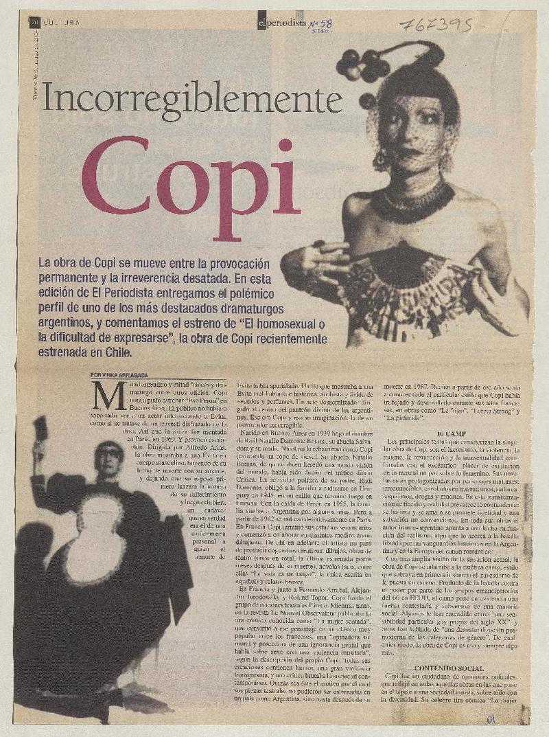 Incorregiblemente Copi [artículo] Vinka Arriagada.