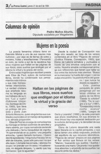 Mujeres en la poesía [artículo] Pedro Muñoz Aburto.