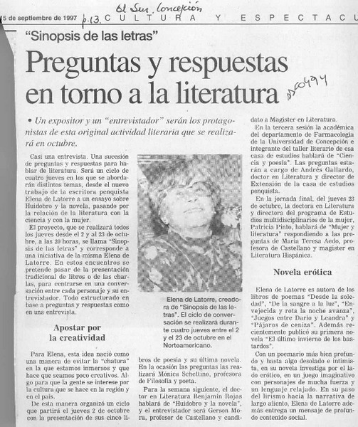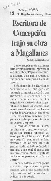 Escritora de Concepción trajo su obra a Magallanes [artículo] Alejandro E. Salazar Carrera.