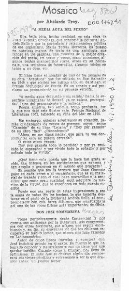 Guzmán Cruchaga, Juan - Sommariva Venegas, José - A media agua del sueño