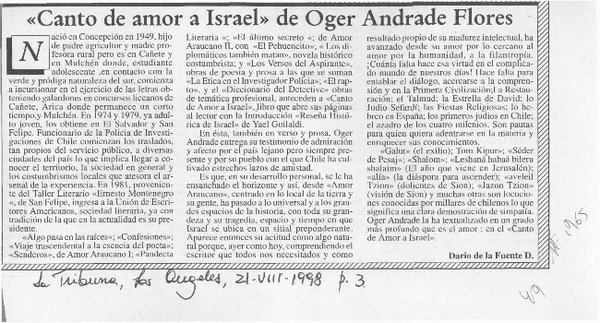 "Canto de amor a Israel" [artículo] Darío de la Fuente D.