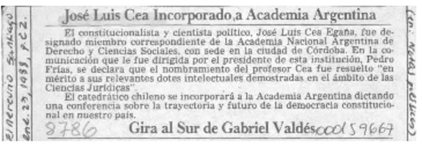 José Luis Cea incorporado a Academia Argentina [artículo].