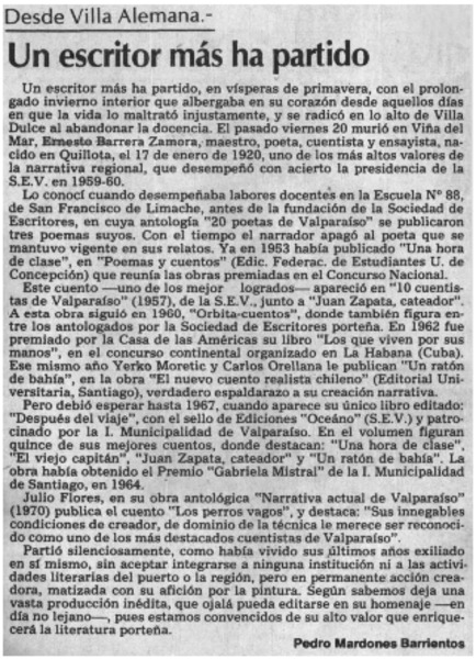 Un escritor más ha partido [artículo] Pedro Mardones Barrientos.