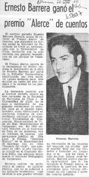 Ernesto Barrera ganó el premio "Alerce" de cuentos [artículo]