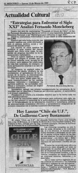 MONCKEBERG, FERNANDO - CAREY BUSTAMANTE, GUILLERMO - CHILE SIN UF, VIVENCIAS - ESTRATEGIAS PARA ENFRENTAR EL SIGLO XXI
