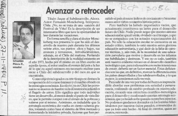 Avanzar o retroceder [artículo] Sebastián Piñera E.