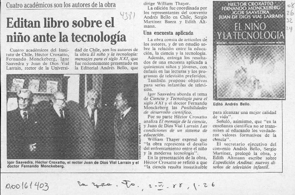 VIAL LARRAIN, JUAN DE DIOS - MONCKEBERG, FERNANDO - CROXATTO, HECTOR - NIÑO Y LA TECNOLOGIA, EL - SAAVEDRA, IGOR