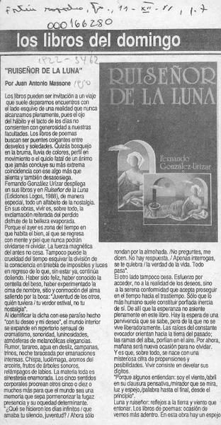 "Ruiseñor de la luna" [artículo] Juan Antonio Massone.