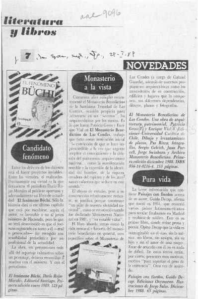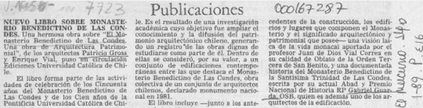 Libro sobre el monasterio benedictino de Las Condes [artículo].