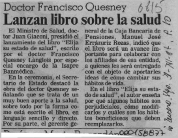 QUESNEY LANGLOIS, FRANCISCO - ELIJA SU ESTADO DE SALUD