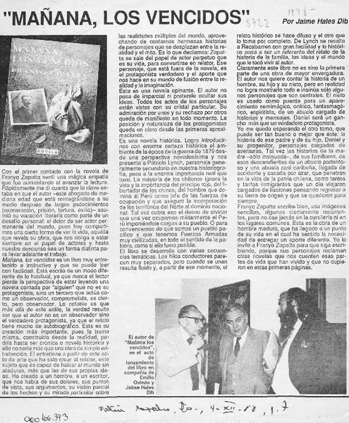 "Mañana, los vencidos" [artículo] Jaime Hales Dib.