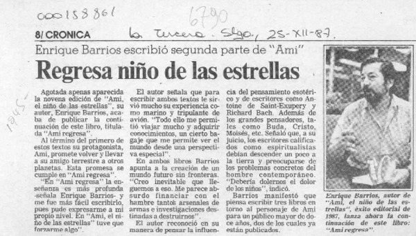 Regresa niño de las estrellas [artículo].