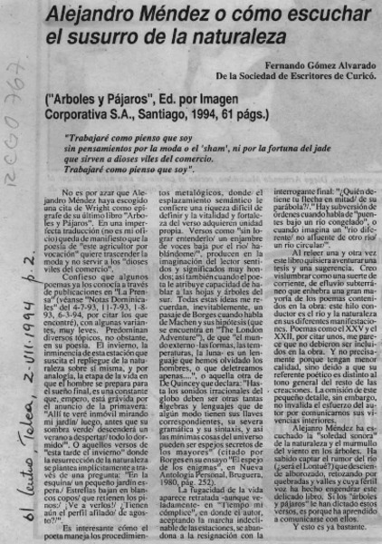 Alejandro Méndez o cómo escuchar el susurro de la naturaleza [artículo] Fernando Gómez Alvarado.